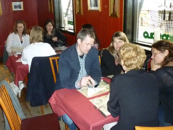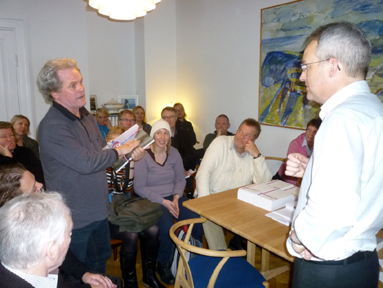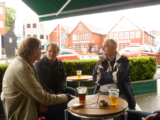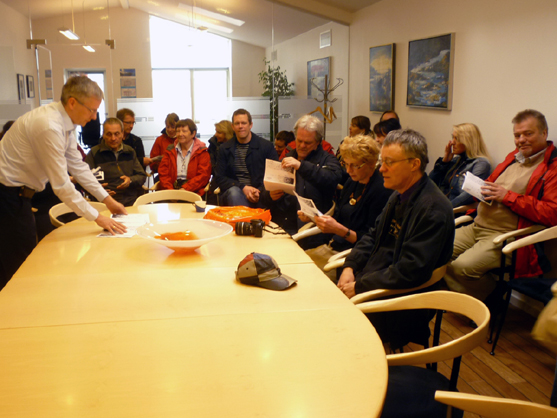 Fundað við komuna til Færeyja. Claus Restrup leiðsögumaður með meiru.