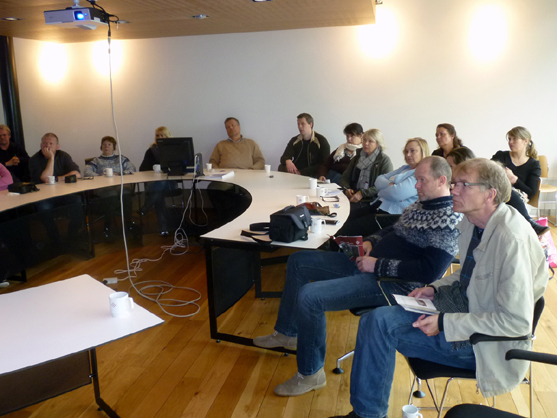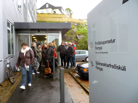 Við Fróðskaparsetrið þar sem félagsfræðikennarar tóku á móti hópinum