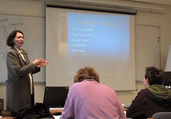 Rannveig Traustadóttir segir áhugasömum ...