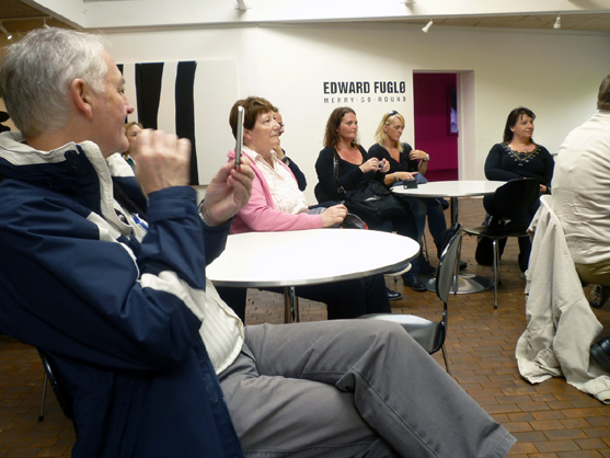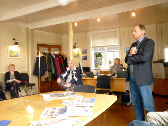 Fundað við komuna til Færeyja. Claus Restrup leiðsögumaður með meiru.